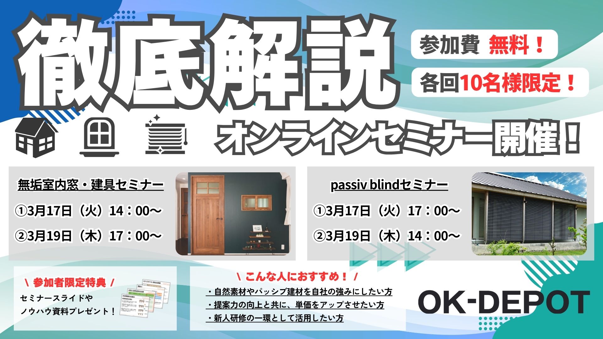 【建築会社様向け】OK-DEPOT人気商材!無垢室内窓・室内ドア・外付けブラインドの徹底解説セミナー